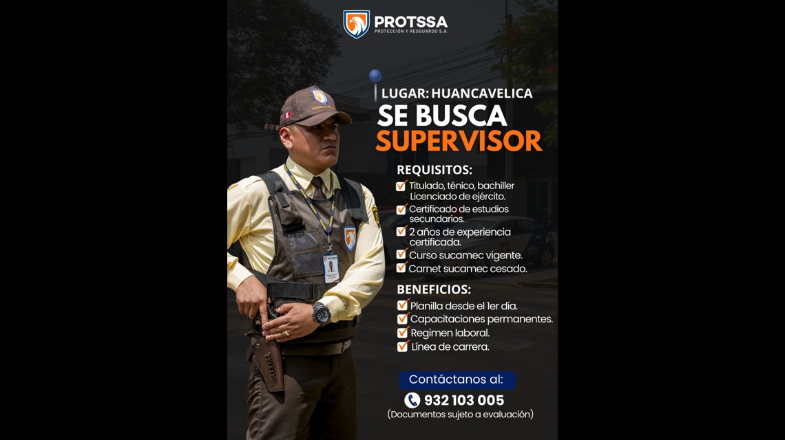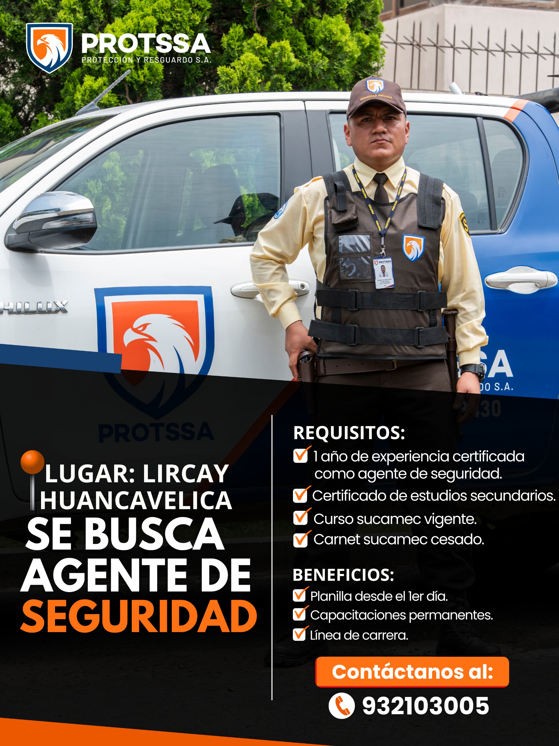 Estamos en búsqueda de AGENTE DE SEGURIDAD ONPE LIRCAY HUANCAVELICA